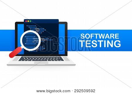 Software testing. Software development workflow process coding testing analysis concept. Vector stock illustration.