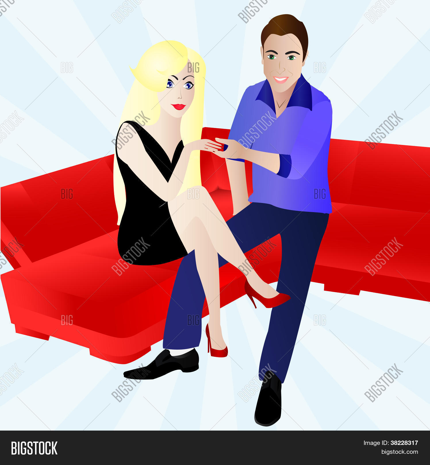 man taking a girl`s hand sitting on sofa
