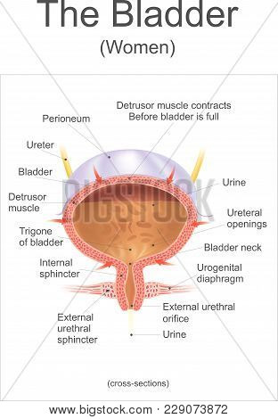 The bladder In the human the bladder is a hollow muscular, and distensible (or elastic) organ, that sits on the pelvic floor. Urine enters the bladder via the ureters and exits via the urethra. Info graphic.