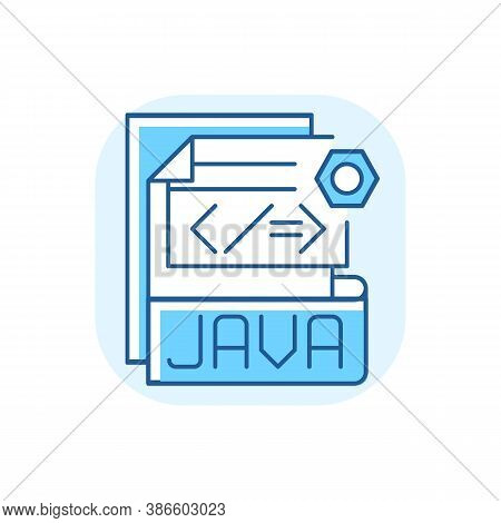 JAVA file blue RGB color icon. Source code file. Java programming language. Lossless data compression, archiving. JAR archive. Platform-independent file format. Isolated vector illustration