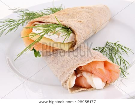 buckwheat crepe with salmon,cheese and dill