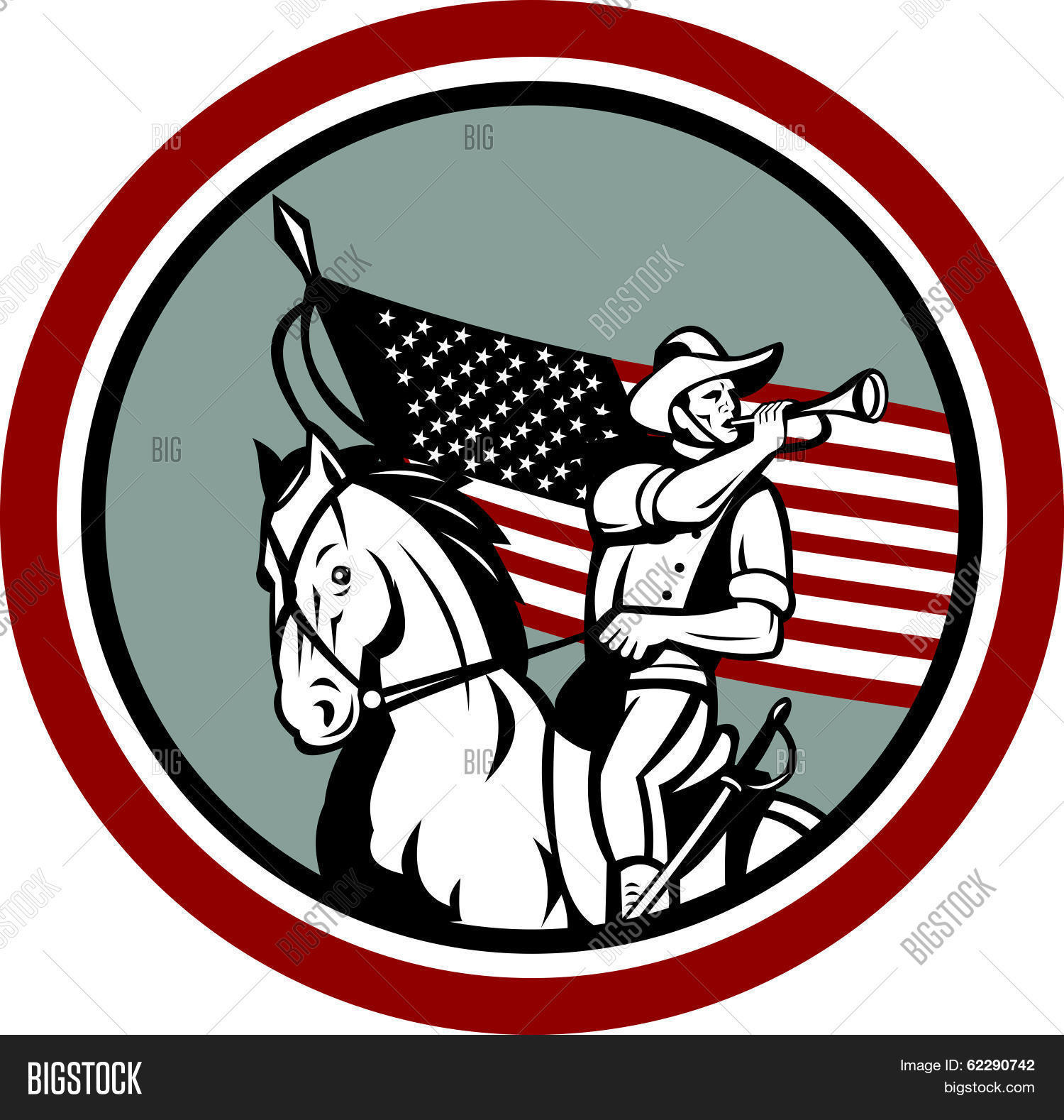 아메리카인, 일군, artwork, 취주, 뿔피리, 마병, 플레그, 제도법, 혼, 필마, 마상, 일러스트레이션, 육군의, 복고풍, 쫄병, 성신, 성조기, 줄무늬, 트럼펫, usa
