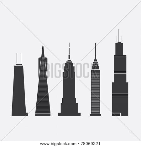 Dec 09, 2014: Set of Abstract Vector Illustrations of Five Famous Skyscrapers: John Hancock Tower, Transamerica Pyramid, Empire State Building, Chrysler Building, Willis Tower - For Editorial Use Only