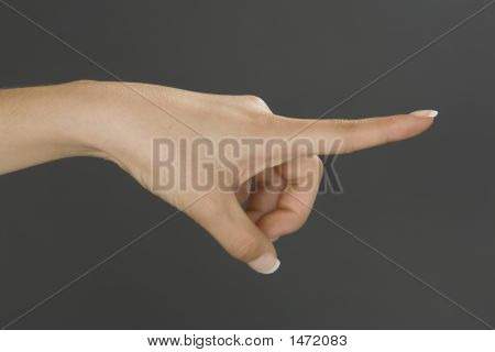 Caucasian female using hand gestures by pointing finger