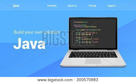 Java programming code technology banner. Java language software coding development website design