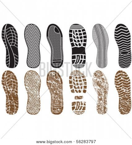 Vector illustration set of footprints with & without sand texture. All vector objects are isolated and grouped. Colors and transparent background color are easy to customize.