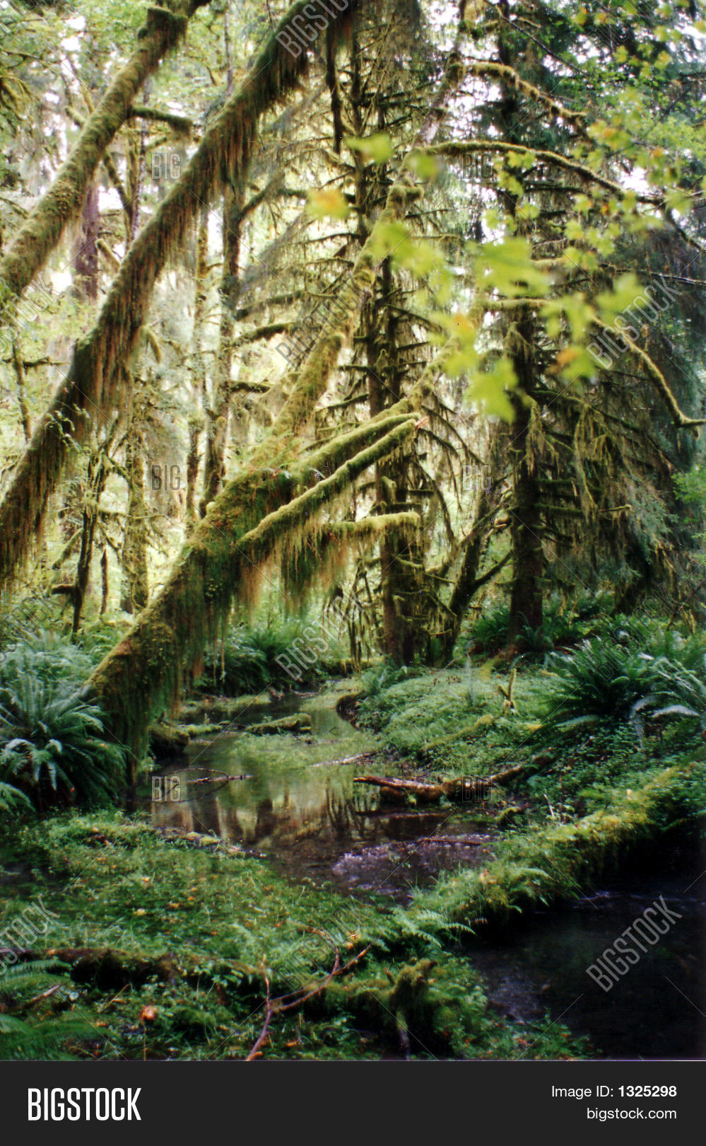 樹林, hoh, la, 青苔, 对内, 奥林匹克, 苑, 推进, 雨林, seattle., 陳述, 溪涧, 绿树, 華盛頓特區, 树林