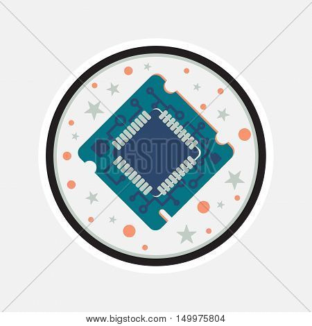 Computer Processor Chip. Symbol of programmer hard work system administrator activities scientific innovation technical advancements and robotics. High tech microprocessor. Vector