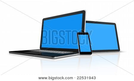 3D laptop mobile phone and digital tablet pc computer - isolated on white with clipping path
