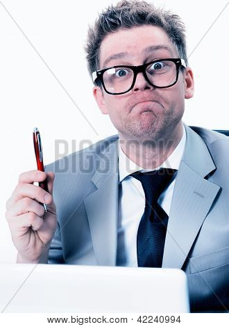 portrait of crazy and funny manager stressed at work