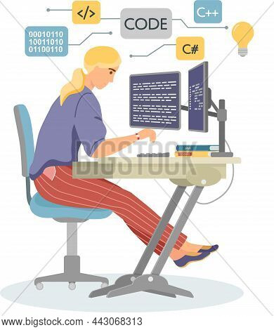 Programmer engineering and coding. Programmer working on code for web app development on computer. Concept of script coding and programming in php, javascript, python languages. Software developers