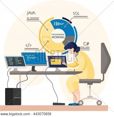 Programmer engineering and coding. Programmer working on code for web app development on computer. Concept of script coding and programming in php, javascript, python languages. Software developers
