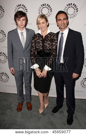 LOS ANGELES - MAY 10: Freddie Highmore, Vera Farmiga, Nestor Carbonell arrive at the "Bates Motel" Reimagining A Cinema Icon Event at the Paley Center For Media on May 10, 2013 in Beverly Hills, CA